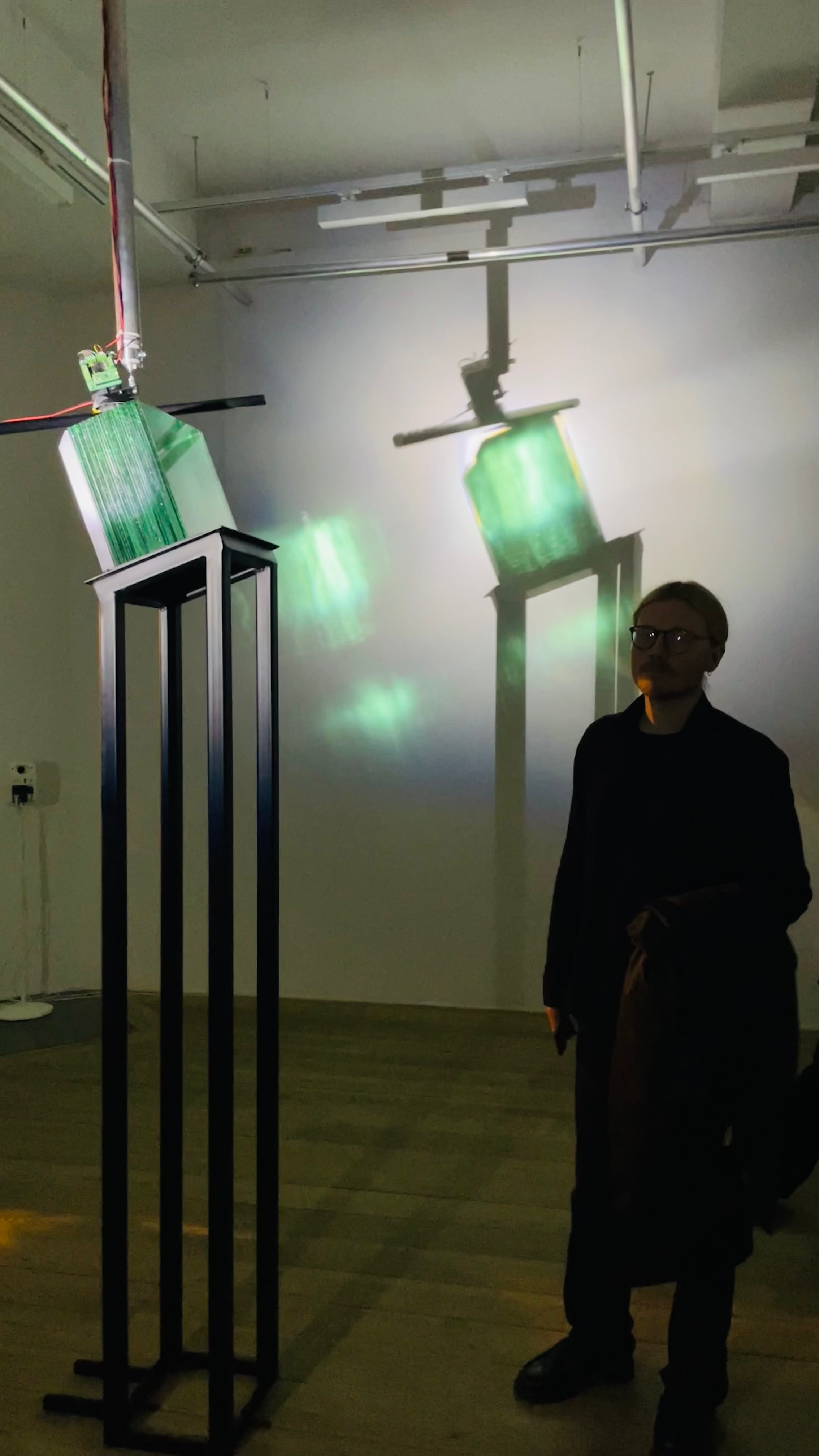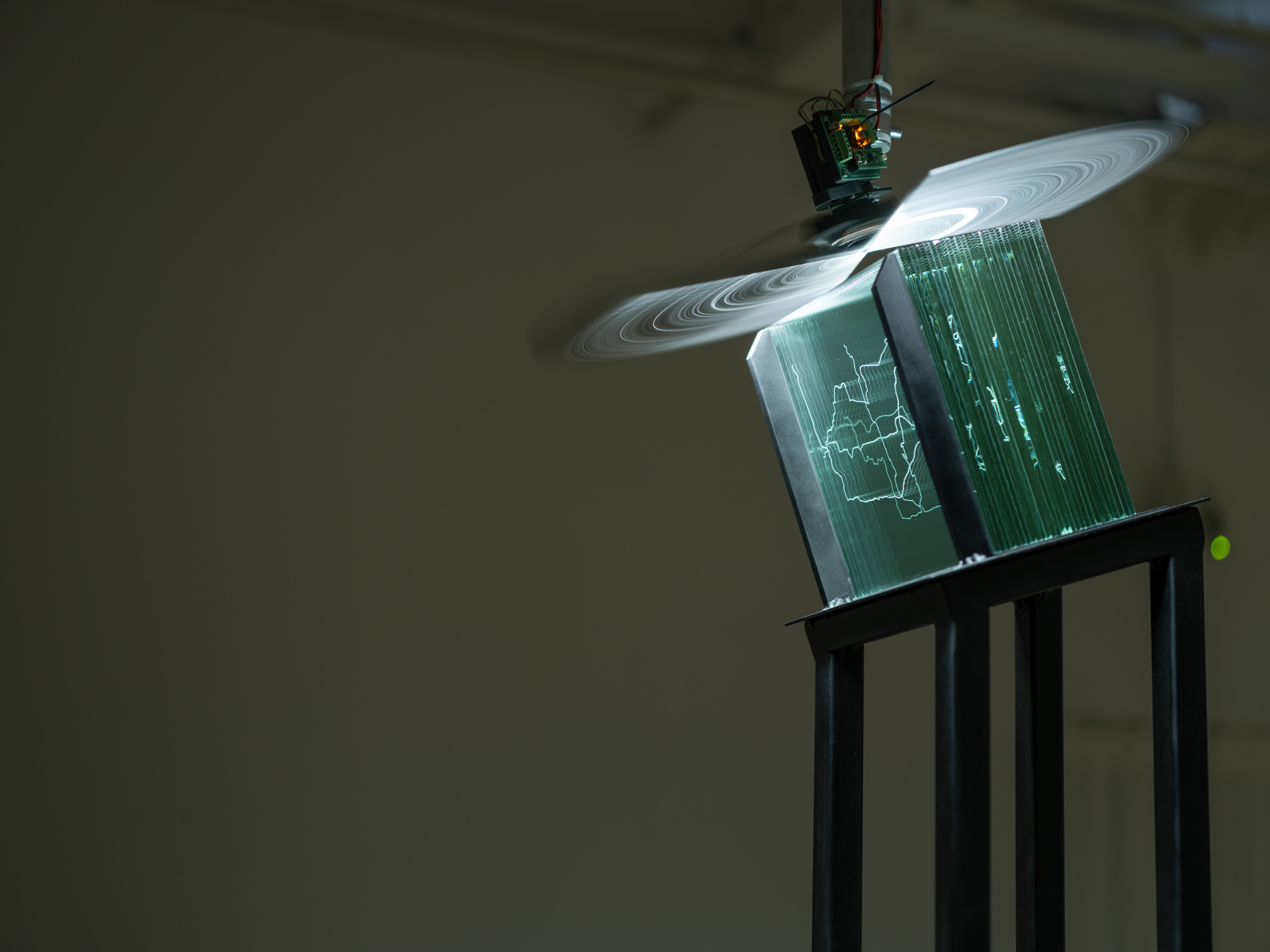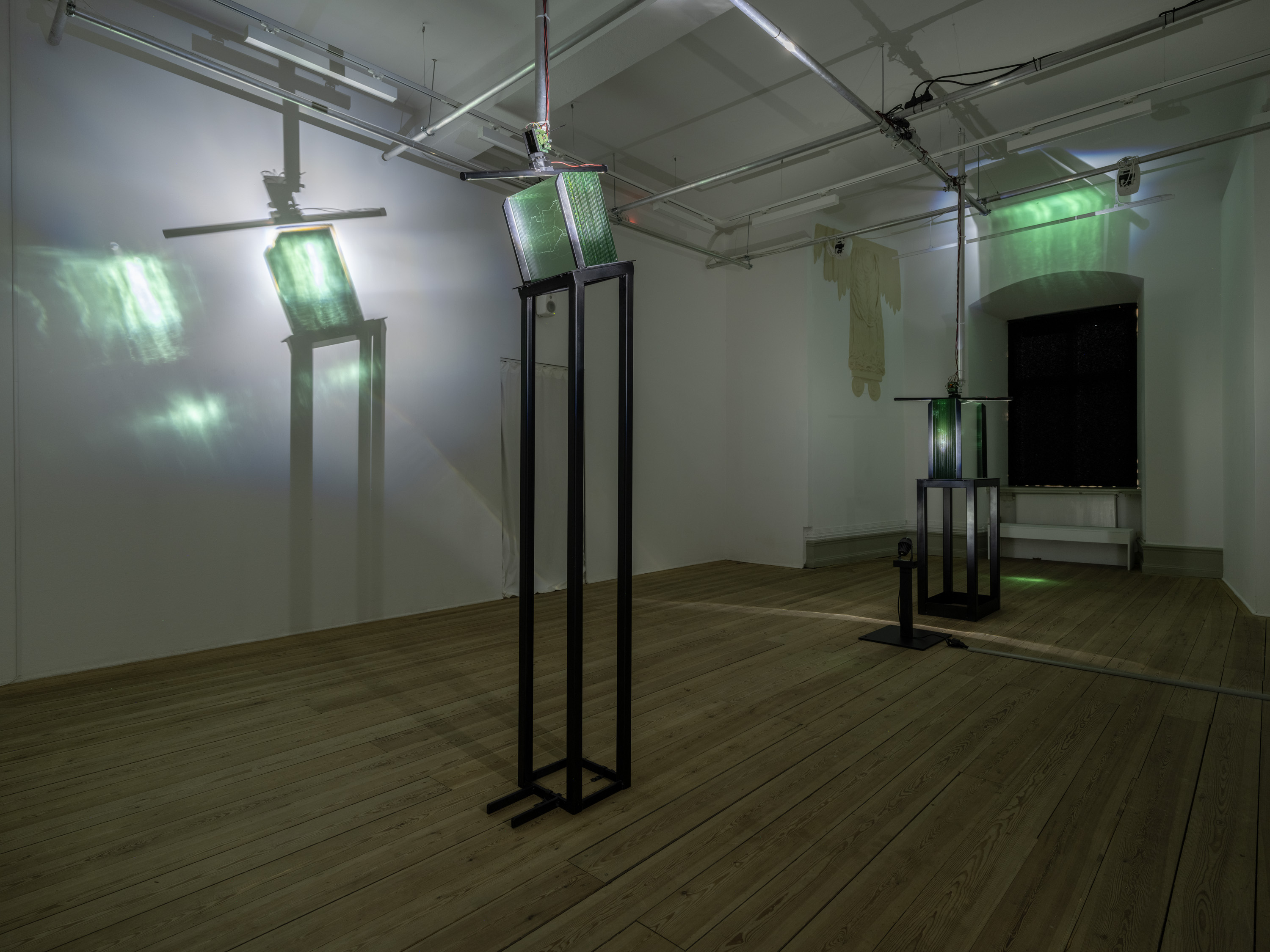 A spatial installation by Nicole Khadivi who created two kinetic sculptures and a multi-channel sound work in collaboration with Marius Varhaugvik